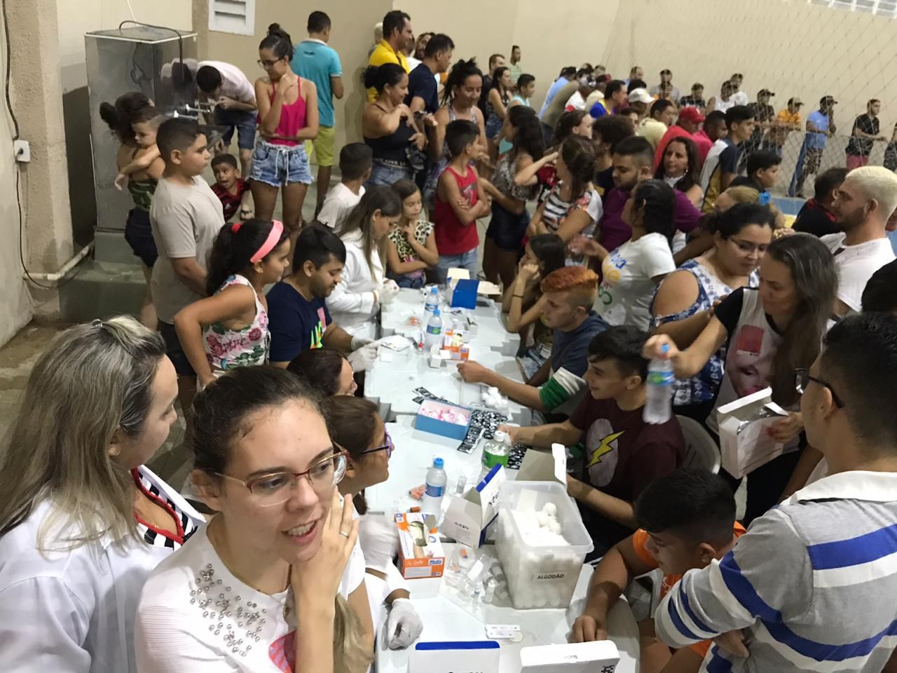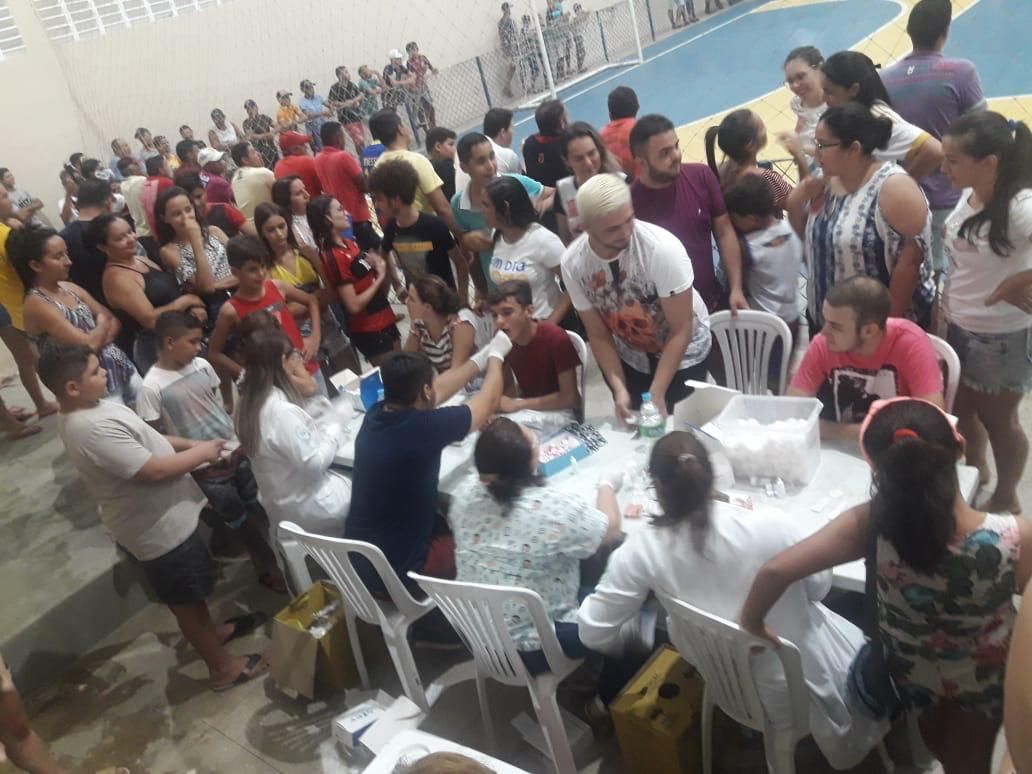Aproveitando a grande quantidade de pessoas reunidas no Ginásio O Nogueirão para assistir as partidas da Final do Campeonato de Blocos, os Profissionais da Saúde Municipal realizaram esta campanha. A Prefeita Fátima Silva também esteve presente no evento.