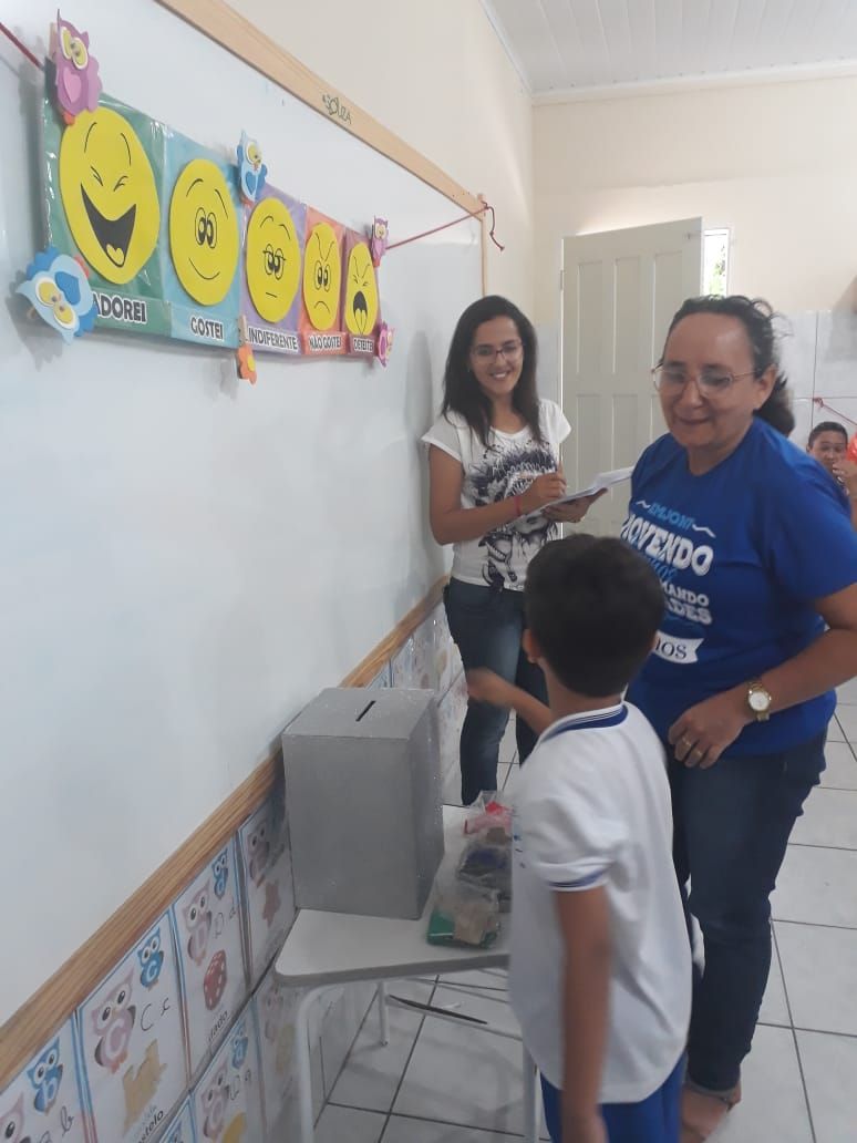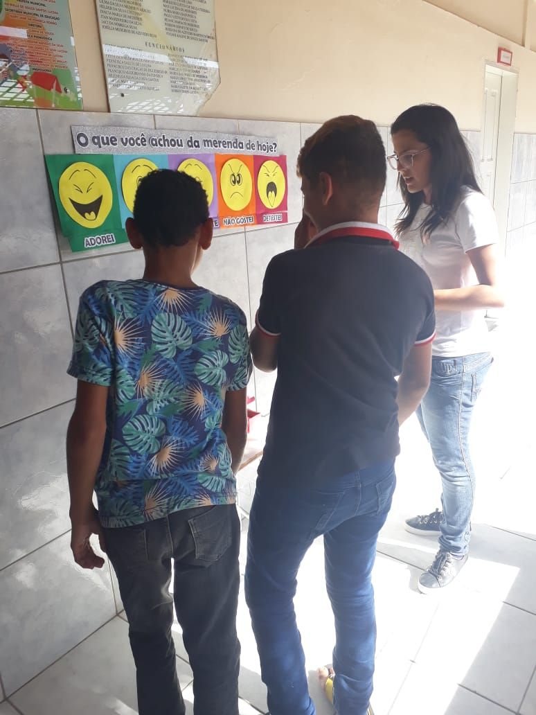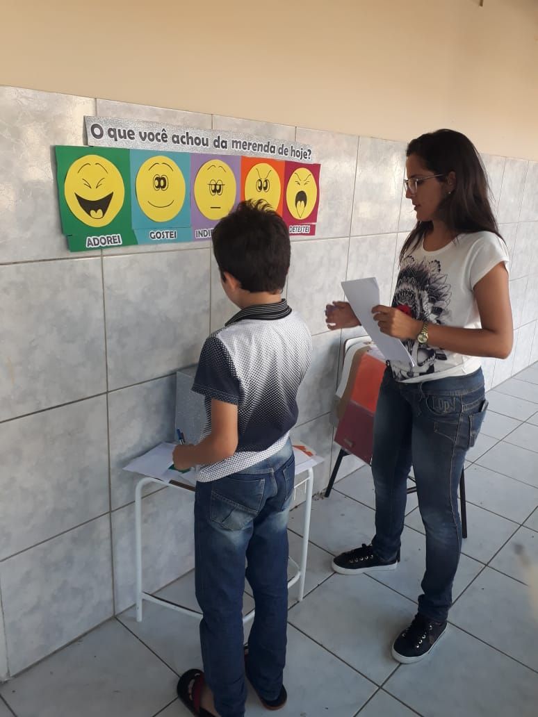 A Nutricionista Mikaella Hayanne, está desenvolvendo desde a semana passada uma Pesquisa com os alunos da Escola Municipal José Nunes de Figueiredo (EMJONF). É o teste de aceitabilidade da merenda escolar. Com o auxílio da Estagiária Santos, a Nutricionista realiza essa pesquisa de forma lúdica utilizando placas com emojis que servem para avaliar o nível de satisfação dos estudantes quanto à merenda escolar: Detestei, Não Gostei, Indiferente, Gostei e Adorei são colocados numa urna. Essas enquetes serão feitas de todas as merendas oferecidas na escola.