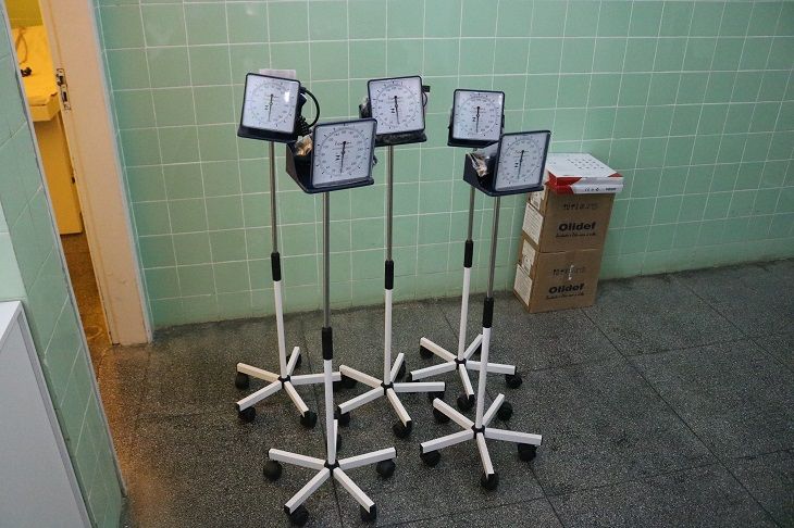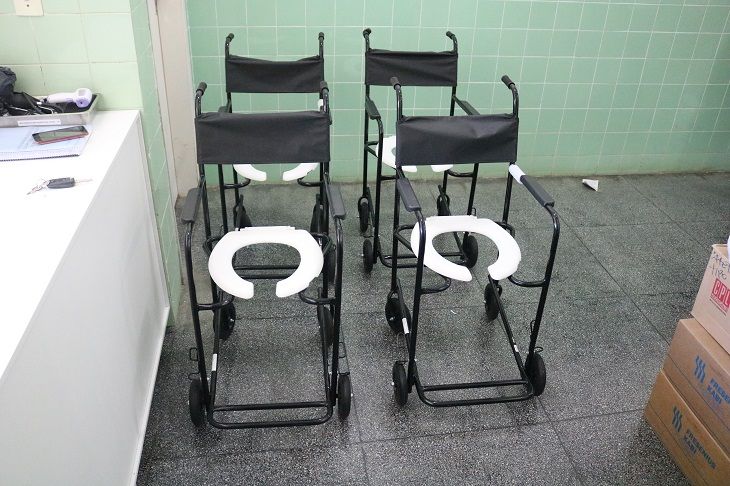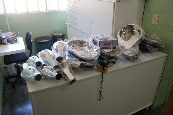 Doze comadres/aparadeiras em aço inox, seis papagaios em aço inox, oito eletrodos elétricos para bisturi, um detector fetal portátil, um oxímetro de pulso portátil, quatro balanças digitais com analisador corporal, dez bandejas retangulares lisas em aço inox, quatro escadas com dois degraus em aço inox, duas pranchas longas rígidas de imobilização pediátrica, cinco nebulizadores hospitalares, cinco aparelhos de pressão arterial, cinco poltronas hospitalares, dez termômetros de infravermelho para verificar a temperatura corporal com alta precisão, e quatro cadeiras higiênicas.