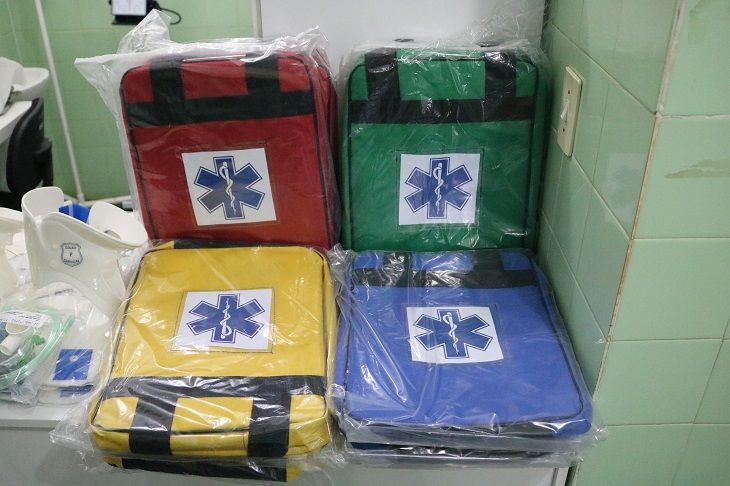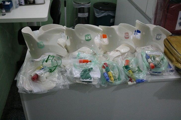 Cinco colares cervicais tamanho P, cinco colares cervicais tamanho M, cinco colares cervicais tamanho G, cinco colares cervicais tamanho GG, quatro máscaras de venturi, dez mochilas de resgate, um detector fetal digital portátil, um oxímetro de pulso e um negatóscópio.