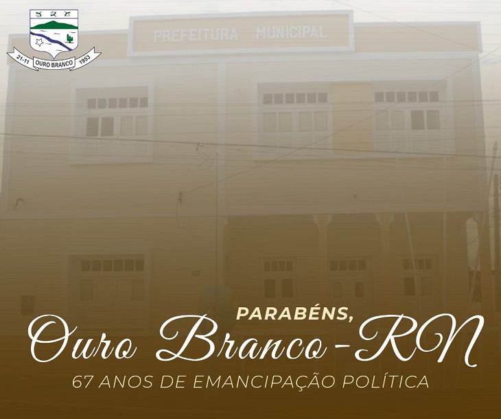 Em 21 de Novembro de 1953, tendo como patrono Luiz Basilisso, Ouro Branco teve seu desmembramento de Jardim do Seridó. Hoje comemora 67 anos de sua emancipação. Neste dia que marca nossa história, parabenizo nosso Município pela sua trajetória e pelo seu povo forte, cheio de fé, batalhador e que não mede esforços para fazer de nossa cidade um lugar de tranquilidade, de respeito e de prosperidade.
