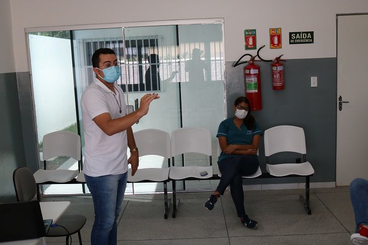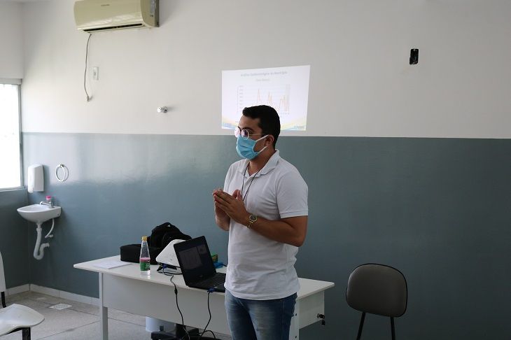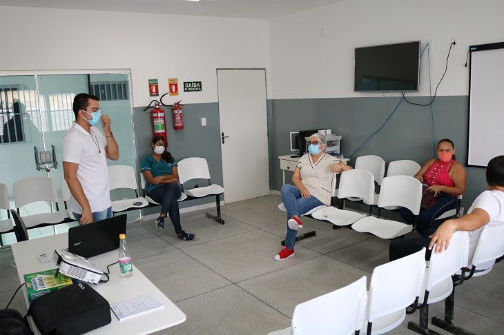 Também neste mesmo dia, o Técnico da SESAP (Brunno Lucena), apoiador Institucional do Estado para enfrentamento da COVID-19, reuniu-se, na UBS I, com a Secretária Municipal de Saúde, Luciana Azevedo; Coordenadora da UBS I, Diana Cesarino; Coordenadora da Vigilância Sanitária, Isabelle Medeiros; Biomédica, Nayana Domingas; e o odontólogo, Juan Fernades.