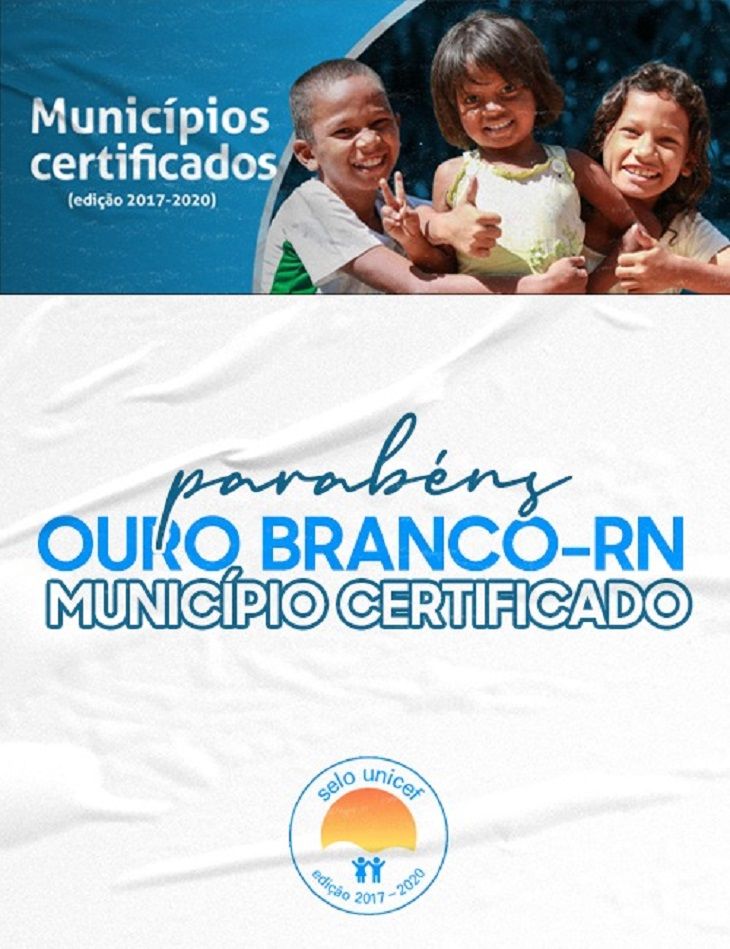 Na manhã desta terça-feira (08), durante evento transmitido via internet, Ouro Branco foi, pela segunda vez consecutiva, certificado pelo Selo UNICEF.