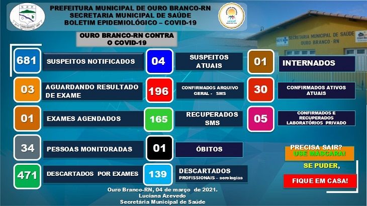 A Secretaria Municipal de Saúde de Ouro Branco informa que, nas últimas 24 horas, nossa equipe atendeu mais 01 paciente com sintomas sugestivos de síndrome gripal que, após avaliado, teve exame solicitado, conforme a seguir: