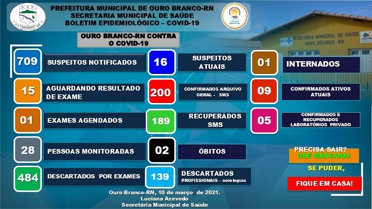 Como pode se observar, o número de casos positivos em nosso município está aumentando cada dia mais. Por isso é de extrema importância que intensifiquemos o uso de máscara (barreira de proteção mais eficiente) ao sair de casa e em lugares de maior trânsito de pessoas. A prevenção em massa é a única forma de quebrar a cadeia de disseminação do CORONAVÍRUS.