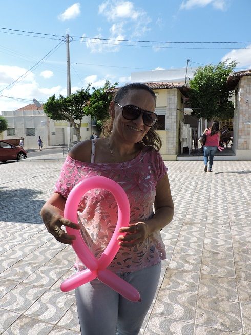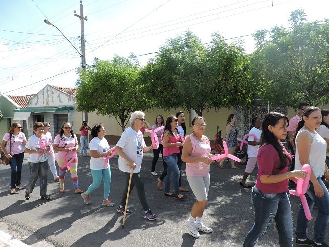 Em seguida, saíram em caminhada pelas principais ruas da cidade, até a sede da Assistência. Durante a caminhada, foram distribuídos laços cor de rosa, que simboliza mundialmente a luta contra o Câncer de mama.