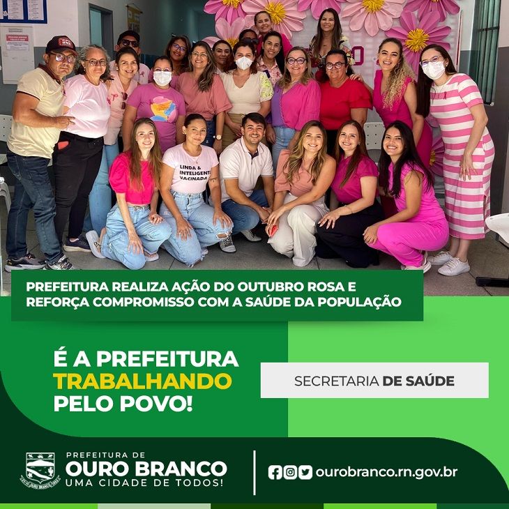 A Prefeitura de Ouro Branco, por meio da Secretaria de Saúde, segue firme no compromisso de garantir qualidade de vida e atendimento humanizado para todos. Nesta sexta-feira (25), foi realizada mais uma importante ação dentro da Campanha Outubro Rosa, promovendo prevenção e cuidado com a saúde das mulheres do município.