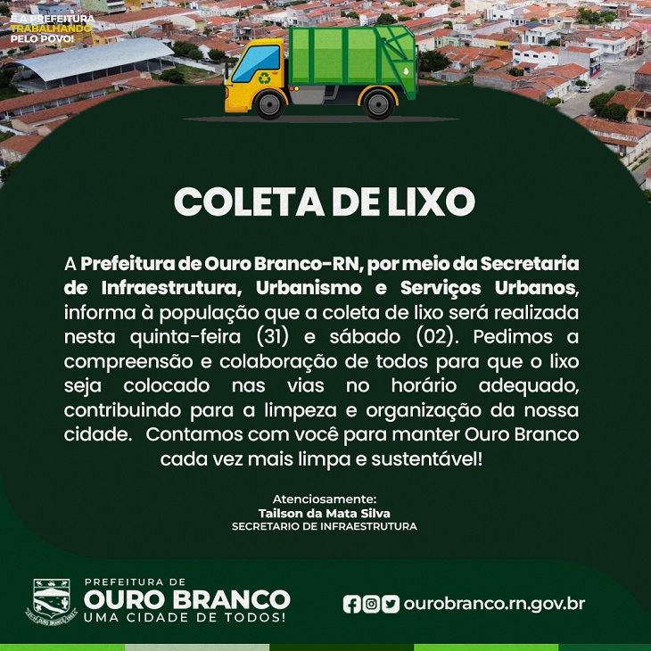 3. Infraestrutura: Secretaria divulga cronograma da coleta de lixo para o fim de semana