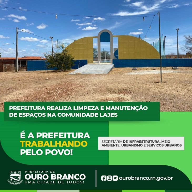 A Prefeitura de Ouro Branco-RN, por meio da Secretaria de Infraestrutura, Urbanismo, Meio Ambiente e Serviços Urbanos, realizou, nos últimos dias, um trabalho intensivo de limpeza e manutenção no entorno da Capela de Santa Luzia e na Quadra de Esportes da Comunidade Lajes.