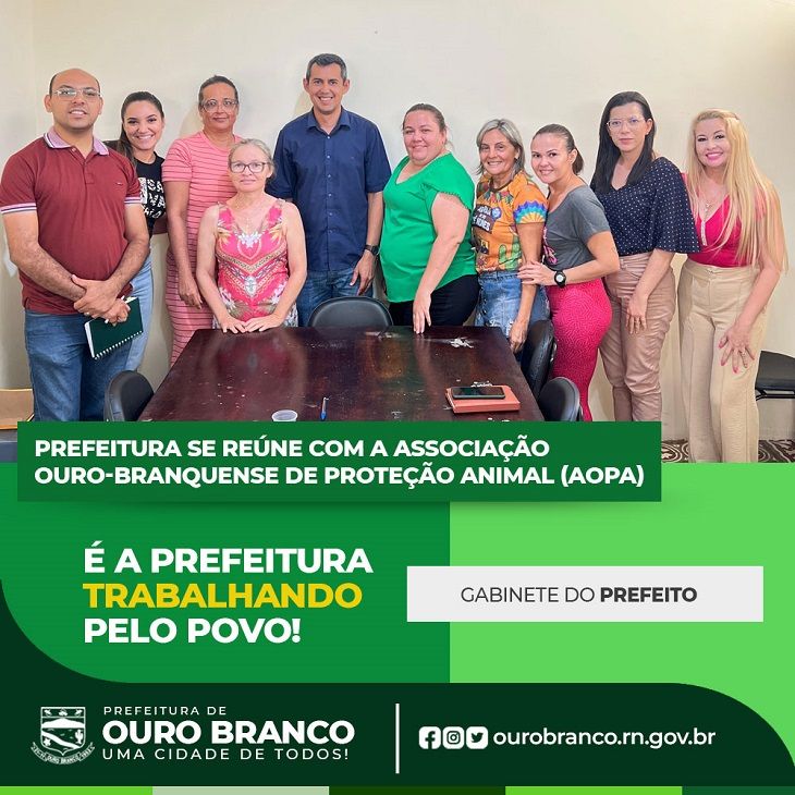 O encontro teve como objetivo discutir a parceria entre a gestão municipal e a associação, que realiza um trabalho fundamental na proteção e cuidado dos animais na cidade. Durante a reunião, foram debatidos temas relacionados ao fortalecimento do apoio da Prefeitura às ações desenvolvidas pela AOPA, reforçando o compromisso com o bem-estar animal e com a qualidade de vida da população ouro-branquense.