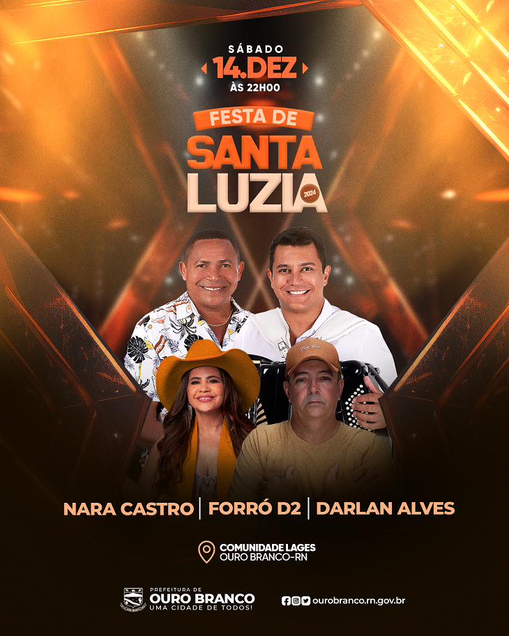 A Comunidade Lages está celebrando sua padroeira, Santa Luzia, e a Prefeitura de Ouro Branco preparou uma programação sociocultural especial pra você, no próximo sábado, dia 14 de dezembro.