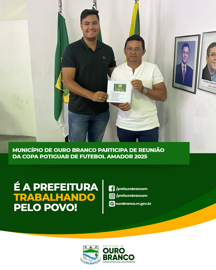 A Prefeitura de Ouro Branco, por meio da Secretaria de Esportes e Lazer, esteve presente na reunião de organização da Copa Potiguar de Futebol Amador, realizada no último sábado (25), na cidade de Caicó-RN. Representando o município, o Secretário de Esportes e Lazer, João Marcos, esteve presente para tratar de detalhes sobre o evento esportivo que promete movimentar a região.