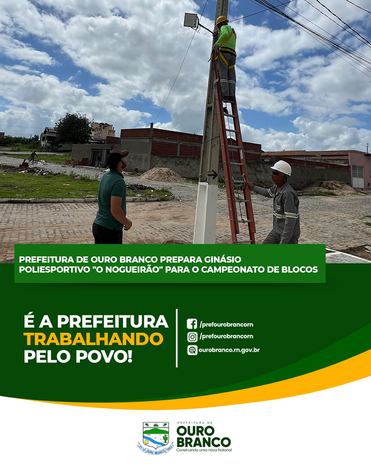 A Prefeitura de Ouro Branco, por meio da Secretaria de Esportes e Lazer, está promovendo melhorias no Ginásio Poliesportivo "O Nogueirão" para a realização do Campeonato de Blocos, que terá início no dia 03 de fevereiro.