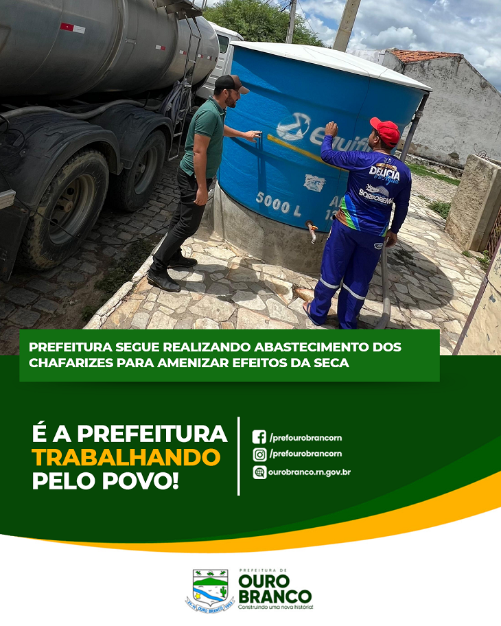 Para isso, a gestão municipal continua abastecendo regularmente os chafarizes instalados em pontos estratégicos da cidade, garantindo o acesso à água para os moradores e atendendo as necessidades da população diante do cenário de estiagem, garantindo suporte essencial às famílias que dependem desse abastecimento.
