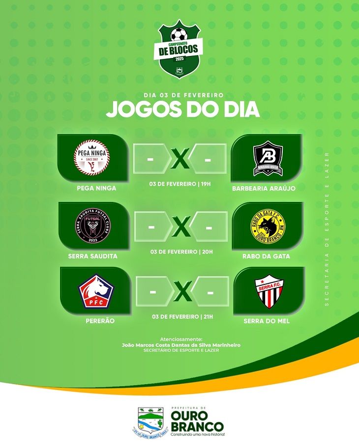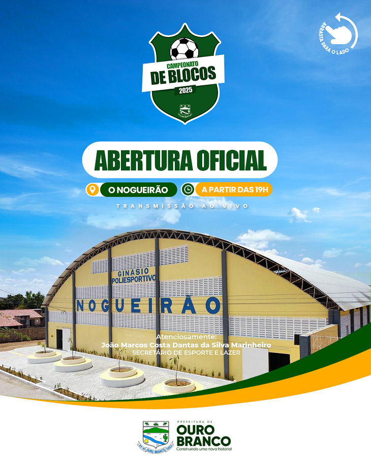 Hoje, às 19h, no Ginásio Poliesportivo “O Nogueirão”, daremos o pontapé inicial no Campeonato de Blocos 2025!
