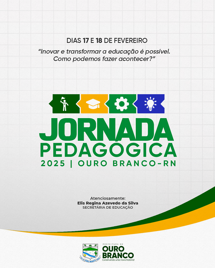 A Prefeitura de Ouro Branco, por meio da Secretaria Municipal de Educação, realizará nos dias 17 e 18 de fevereiro a Jornada Pedagógica 2025, um momento de aprendizado, reflexão e planejamento voltado para os profissionais da educação do município.