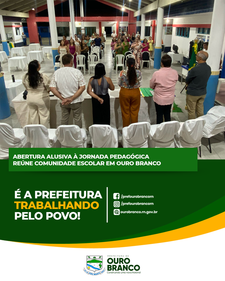 Na noite da última segunda-feira (17), a Prefeitura de Ouro Branco, por meio da Secretaria Municipal de Educação, deu início à Semana Alusiva à Jornada Pedagógica, um momento essencial de planejamento e troca de experiências para fortalecer a educação no município.