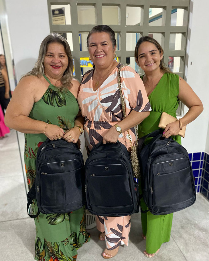 Durante a cerimônia, houve a entrega de kits aos profissionais da educação, compostos por mochila, cadernos e todo o material necessário para o ano letivo, um investimento do Governo Municipal para garantir melhores condições de trabalho e valorização dos educadores.