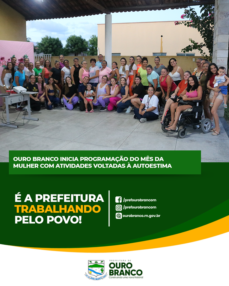 A programação especial do Mês da Mulher segue nesta quinta-feira (13), reafirmando o compromisso da Prefeitura de Ouro Branco em promover ações que valorizam, apoiam e fortalecem as mulheres do município.