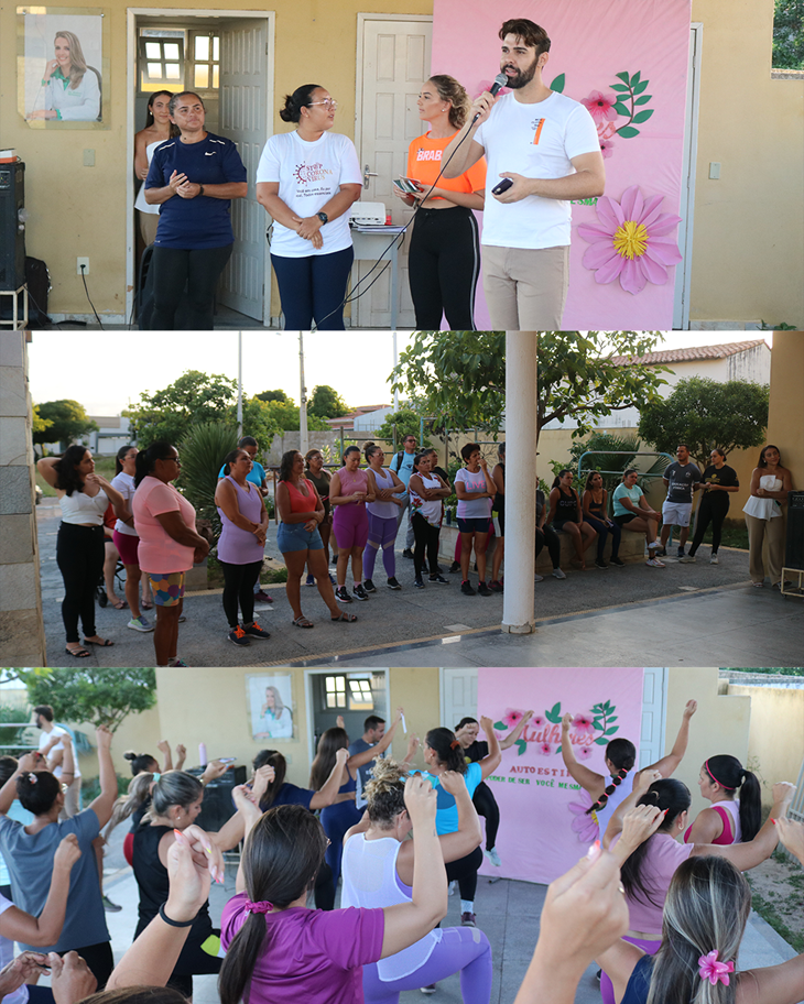 A programação começou com uma aula de dança e funcional fight, modalidade que combina exercícios de luta com treinamento funcional, conduzida pela equipe do Espaço Delas. Em seguida, a Nutricionista Luanna Kássia, pós-graduada em Nutrição Clínica e Esportiva, ministrou uma palestra abordando a influência da alimentação na rotina e na saúde das mulheres. Logo depois, um novo momento de dança, comandado por Aline Cristine, trouxe descontração e envolvimento para todas as participantes.