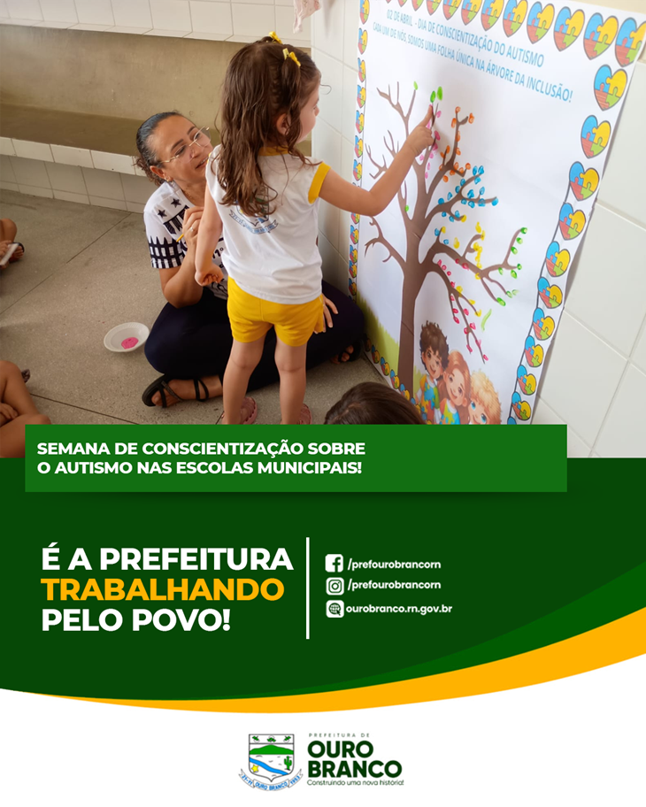A Semana de Conscientização Sobre o Autismo reforça o compromisso da Prefeitura de Ouro Branco com a educação inclusiva, garantindo que cada criança seja valorizada e respeitada em sua individualidade.