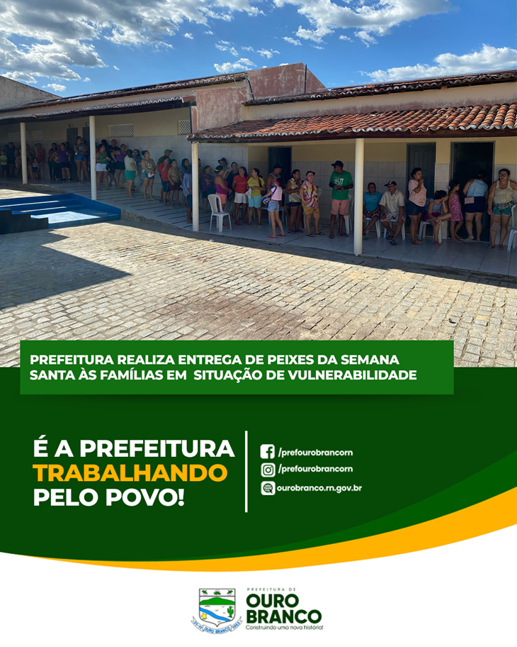A Prefeitura de Ouro Branco, por meio da Secretaria Municipal de Assistência Social e Cidadania, realizou nesta Semana Santa, a entrega de peixes às famílias beneficiárias de programas sociais e em situação de vulnerabilidade social do município.
