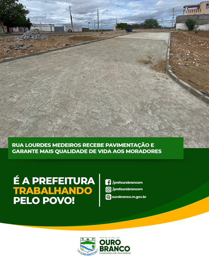 A Prefeitura de Ouro Branco concluiu mais uma importante obra de infraestrutura no município: a pavimentação da Rua Lourdes Medeiros. O serviço, que passou por todas as etapas – do preparo do solo à colocação do calçamento – trouxe mudanças significativas para os moradores e para a paisagem urbana da nossa cidade.