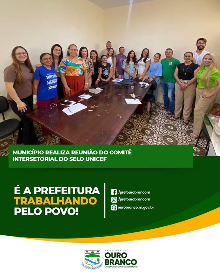 Na manhã desta sexta-feira, 08 de agosto, a Prefeitura de Ouro Branco sediou, em sua sala de reuniões, o primeiro encontro do Comitê Intersetorial do Selo UNICEF – Edição 2025-2028. A reunião foi conduzida pela articuladora municipal, Maria Gabriela Dantas, e pelo Mobilizador de Adolescentes, Yvison Medeiros, reunindo os integrantes do comitê para alinhar e apresentar as informações iniciais sobre a nova edição do programa.