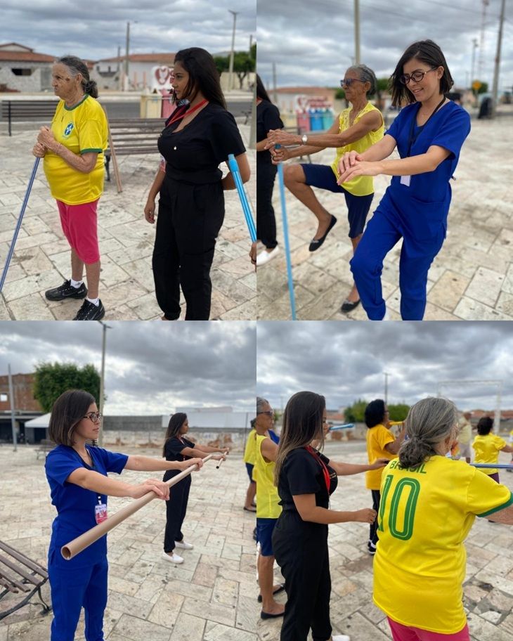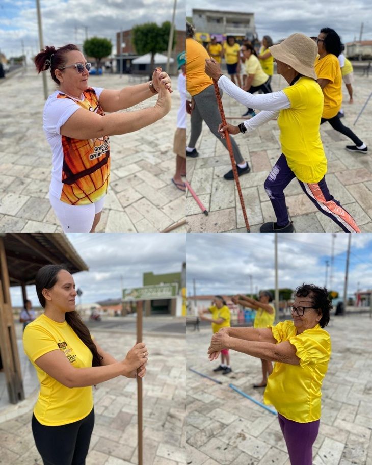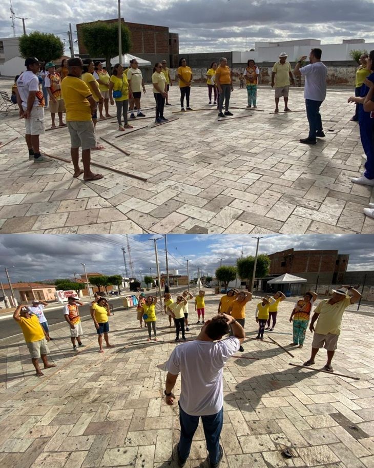 A atividade aconteceu às 7h30, na Praça Arlinda Medeiros, reunindo idosos do município em um momento de cuidado e incentivo à saúde. O encontro teve como foco a mobilidade e a prática de exercícios físicos, reforçando a importância da atividade regular para o fortalecimento do corpo, prevenção de doenças e melhoria da qualidade de vida.