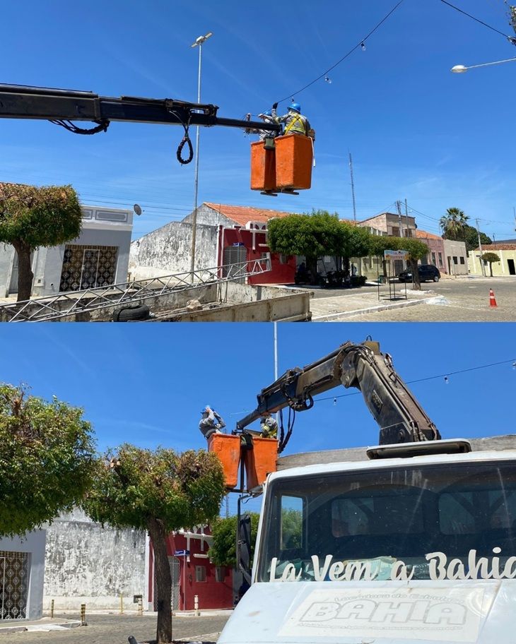 Os serviços incluem a substituição de lâmpadas, revisão de pontos de energia, manutenção geral da rede elétrica, além da caiação de ruas e pintura das faixas de pedestres, assegurando um ambiente mais iluminado, organizado e acolhedor para a população.