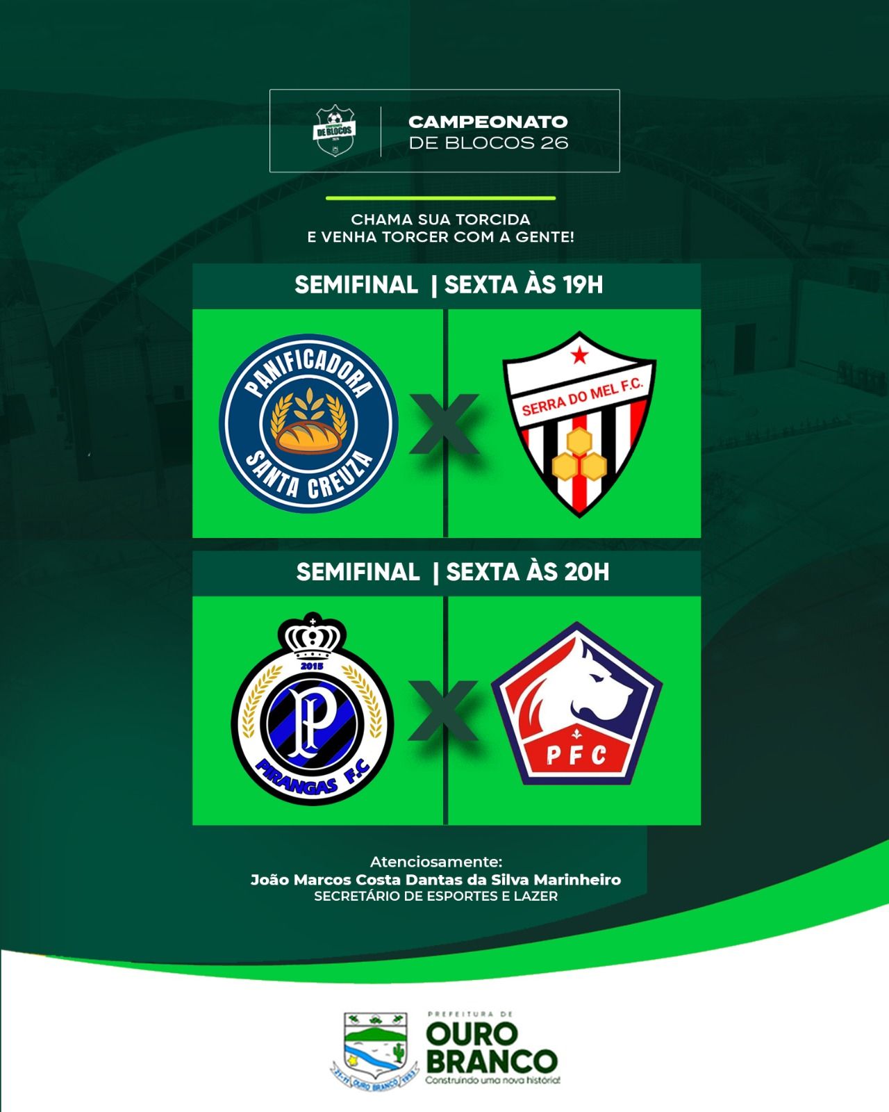 O Campeonato de Blocos é uma das maiores tradições esportivas do município, fortalecendo o esporte, a integração entre os blocos e a participação da comunidade durante o período festivo. A Prefeitura de Ouro Branco convida toda a população para prestigiar as semifinais, torcer com alegria e contribuir para mais uma grande festa do esporte local.