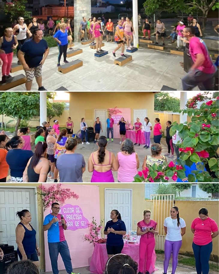 As atividades aconteceram na Academia de Saúde Ana Balbina, reunindo participantes para uma tarde dinâmica e descontraída. A programação contou com atividade física conduzida pelo Educador Físico Roberto Jeferson, que incentivou as mulheres a cuidarem da saúde por meio do movimento e da prática de exercícios.