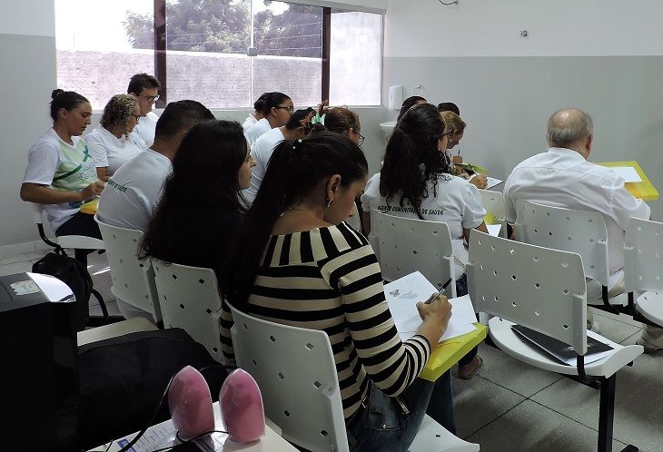 Nesta terça (10), o médico do PSF I - Dr Anchieta Moura, as enfermeiras dos PSF\'s I e II - Diana Cesarino e Vitória Silva, a secretária de Saúde - Luciana Azevedo, técnicos de enfermagem e os Agentes comunitários de saúde, participaram do treinamento: Tabagismo programa Deixando de fumar sem mistério.