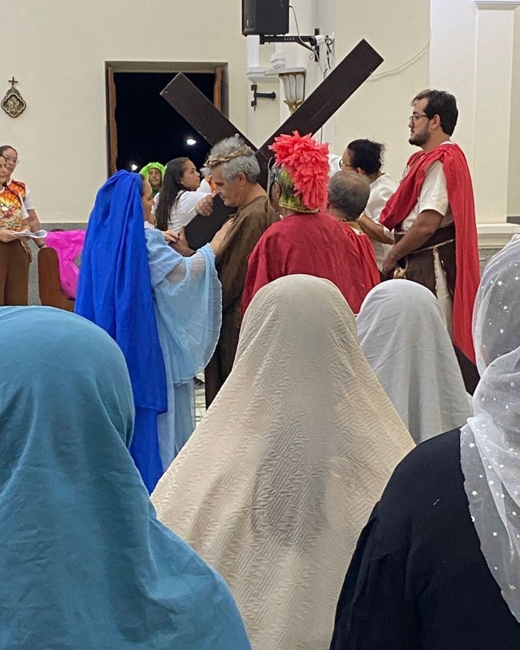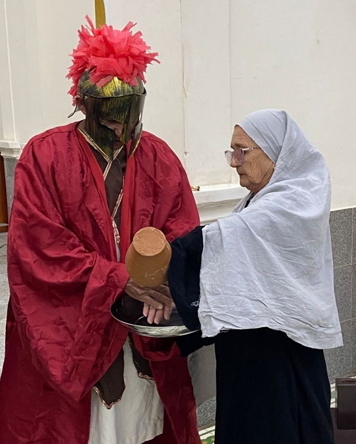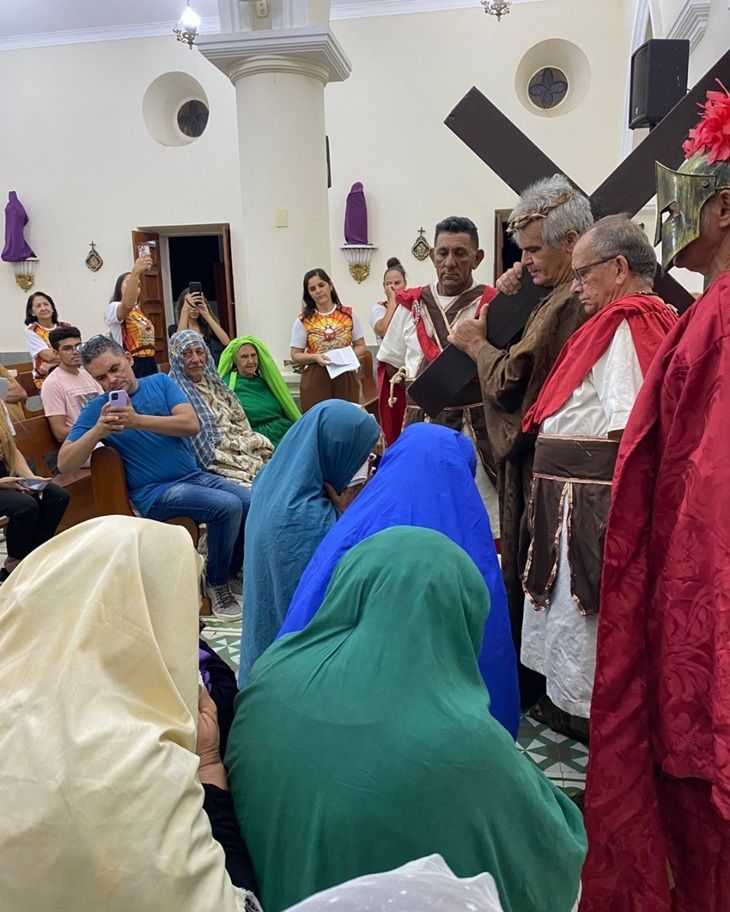 A apresentação foi conduzida e vivenciada pelos próprios idosos, que emocionaram os fiéis ao retratar, com profundidade e espiritualidade, o caminho de dor, entrega e amor de Jesus Cristo em sua missão redentora.