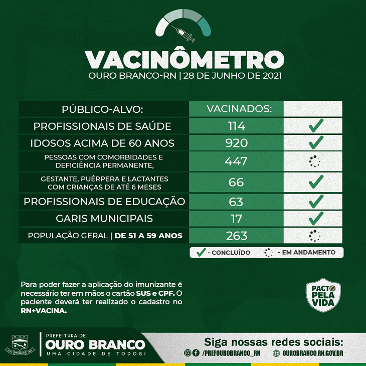 Vacinômetro: confira como está o processo de vacinação contra a Covid-19 30/06/2021
